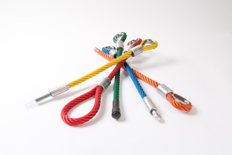 繊維ロープとスチールワイヤーロープを組み合わせることによって繊維ロープの風合いとスチールワイヤーロープの高強度、低伸度を兼ね備えたロープです。繊維は耐候性、耐摩耗に優れているポリエステル原着糸を使用し、芯にはサビにくいメッキを施したワイヤーストランドを使用しています。コンパウンドロープは繊維製ロープと異なり、正確な寸法が必要となります。図面データのご提供をお願いすることがありますので、お気を付けください。